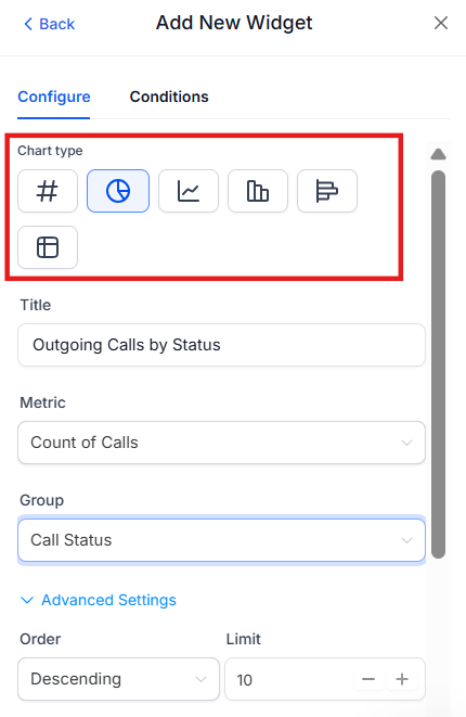 Question: What chart types are available for call widgets?