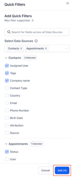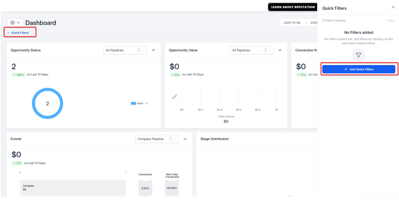 Section titled “Step 3: Add Filters”- Click on + Add Quick Filters.