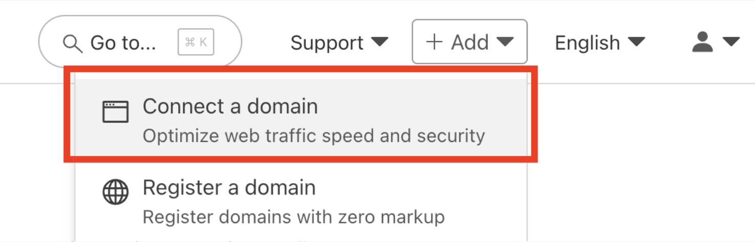 2- Choose the option to add or connect a new domain.