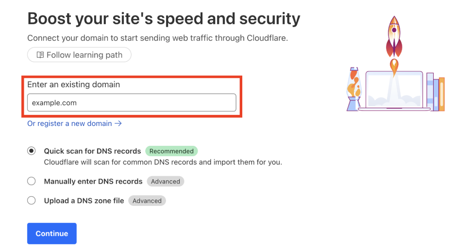 3- Enter the domain name and continue.