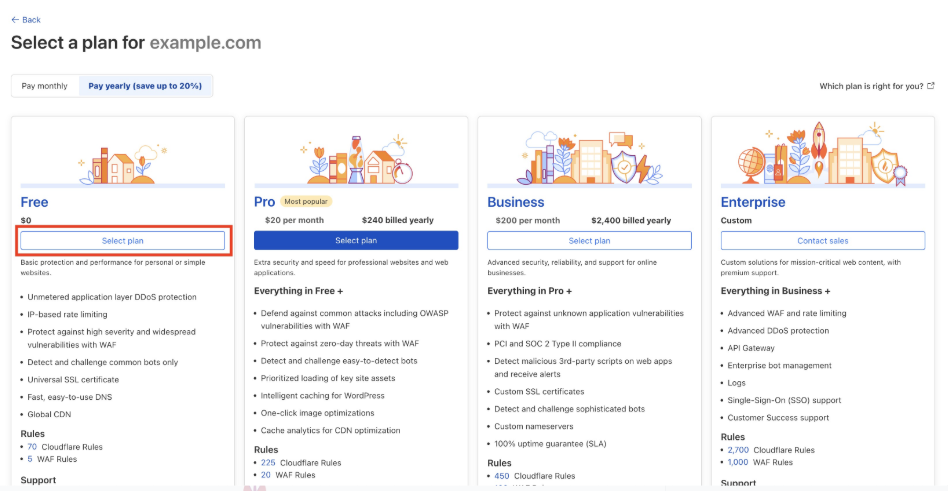 4- Select an appropriate service plan (free or paid, depending on requirements).