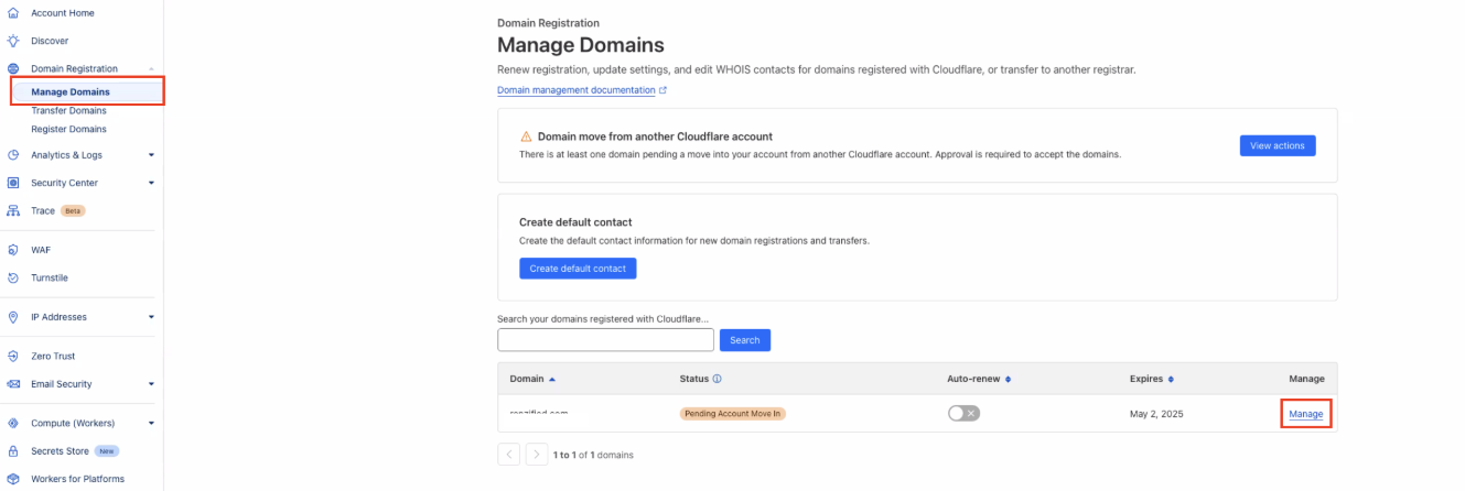 Domain Transfer-out to Cloudflare