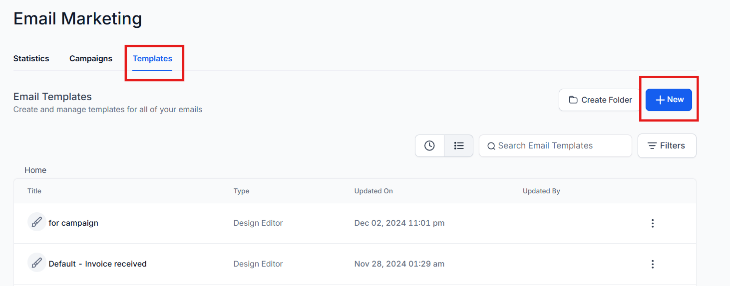 - For Email Templates, head to Marketing>Emails>Templates>New, or Edit an existing template.