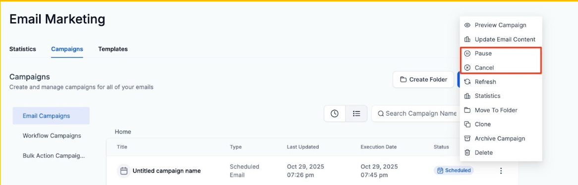 Pause and Cancel Options for Scheduled Email Campaigns