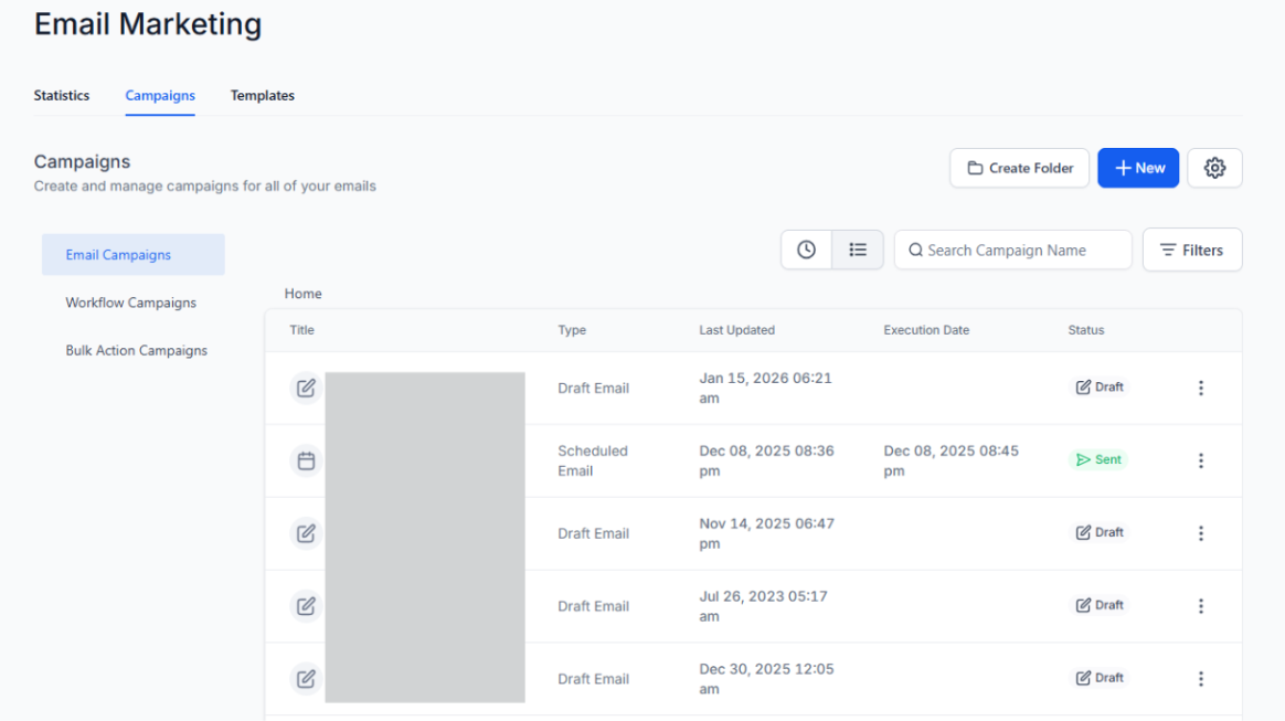 Section titled “Step 1: Hiding Elements From Mobile or Desktop View ”- Navigate to Marketing and then to the emails sub-tab. Choose Campaigns/Templates.