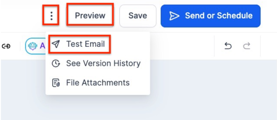 Question: How do I preview my email in mobile view? Answer: To preview your email in mobile view, click the 3-dots menu in the email builder and select “Preview Template.” You can then toggle between desktop and mobile views at the top of the preview screen.