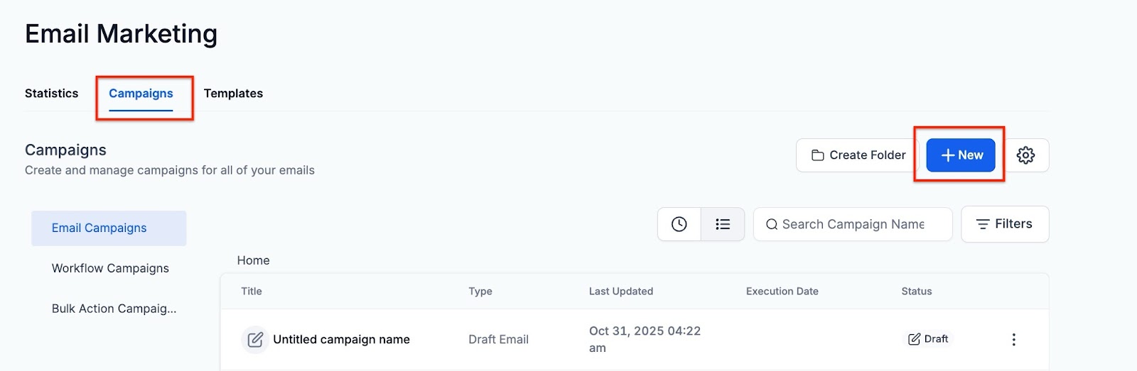 Section titled “Part 1: Create the email”- Head to Marketing > Emails > Campaigns - Create Campaign