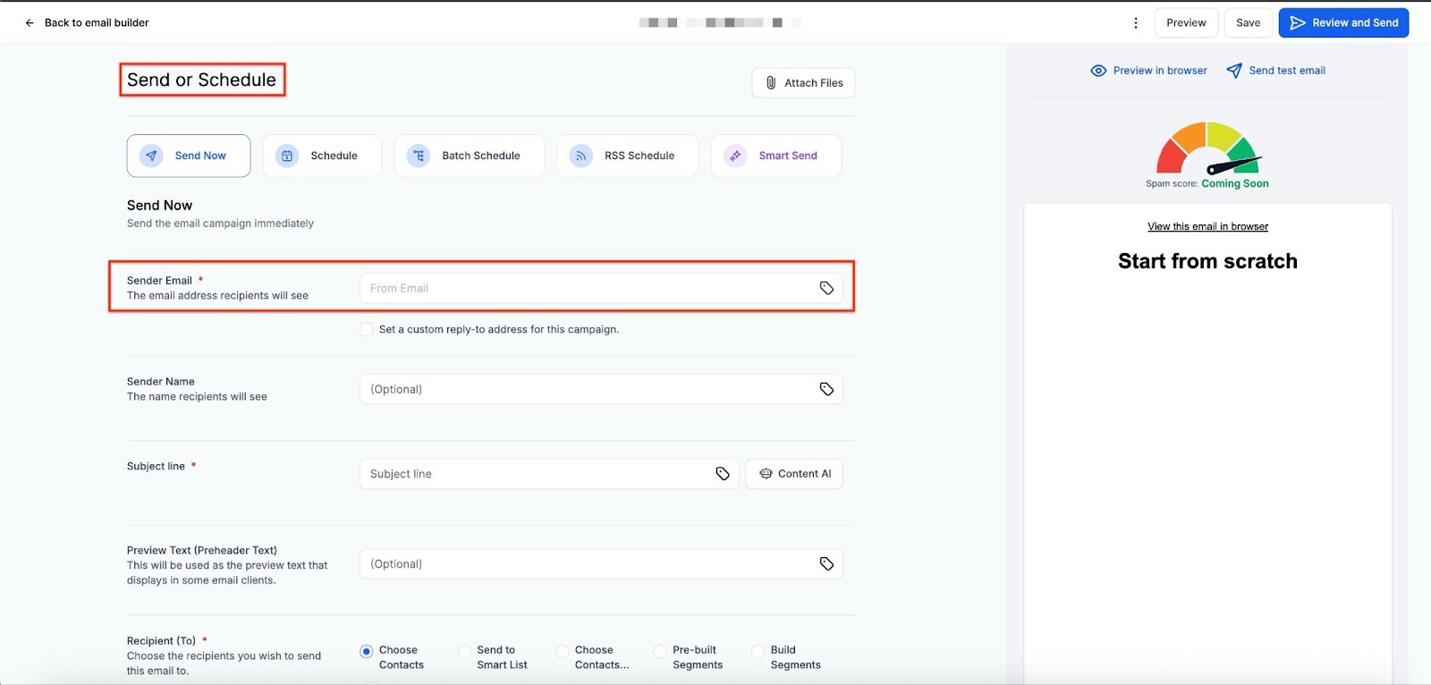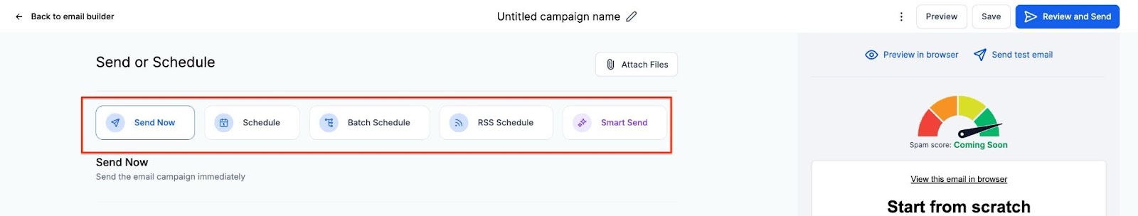 - Select the option to Send Now or Schedule (Depending on when you want to send the email, now or later)