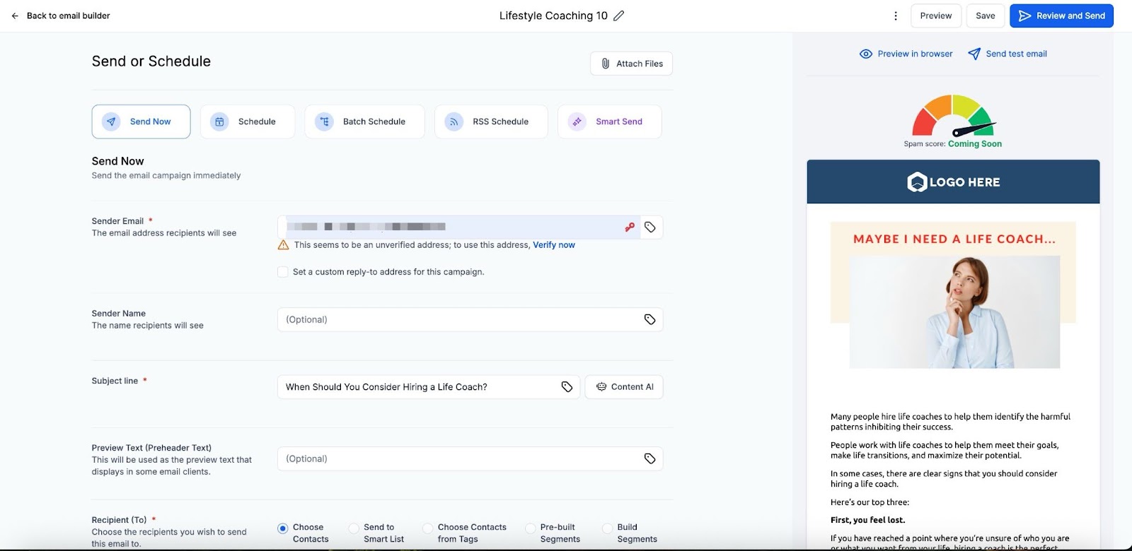 - Customize the design, and send your campaign.