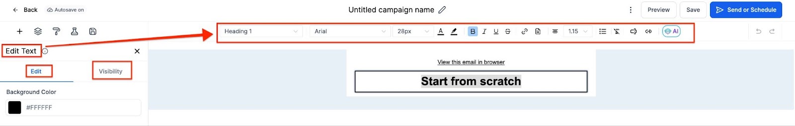 1. Setting Up an Email Campaign: Begin by setting up your email campaign in the campaign builder. Once done, click on the send or schedule icon: