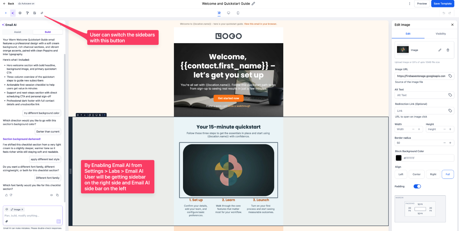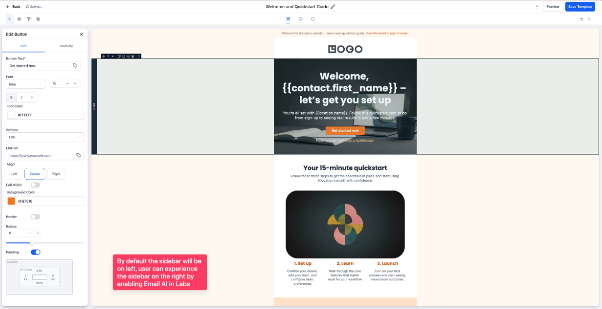 Question: Can I undo a change I made to my email design? Answer: Yes. Click the three dots next to the Save button to access Version History. This allows you to view previous iterations of your design and restore an older version if you made a mistake.