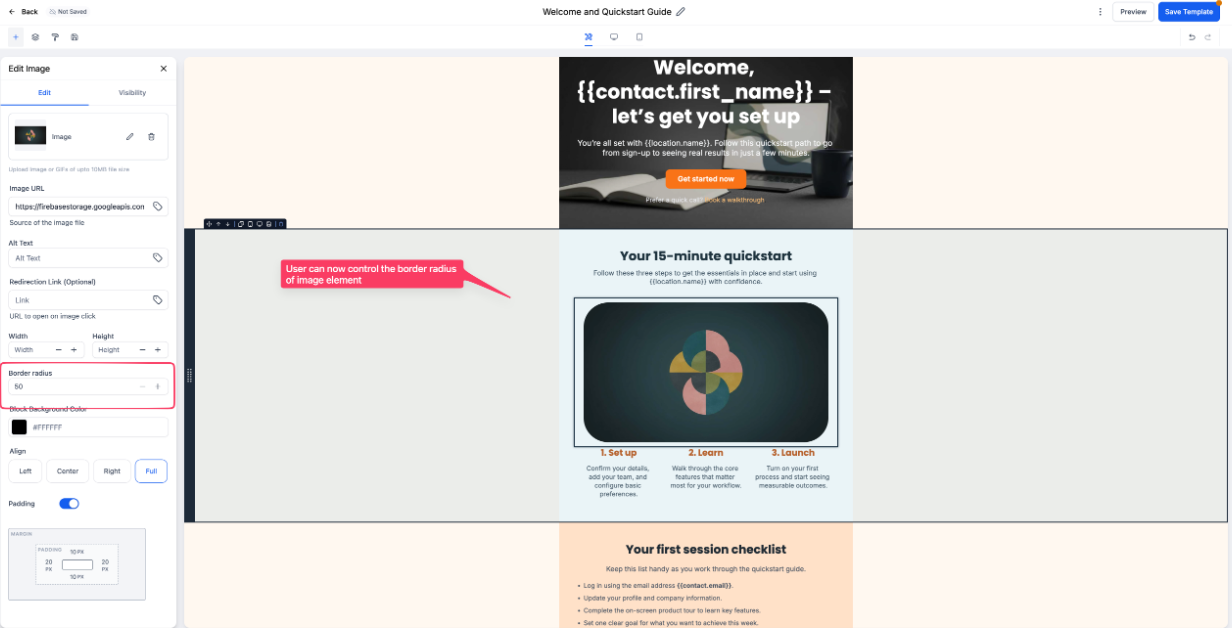 Enhanced Image Borders: Image elements support overall border controls, allowing for more precise design styling.