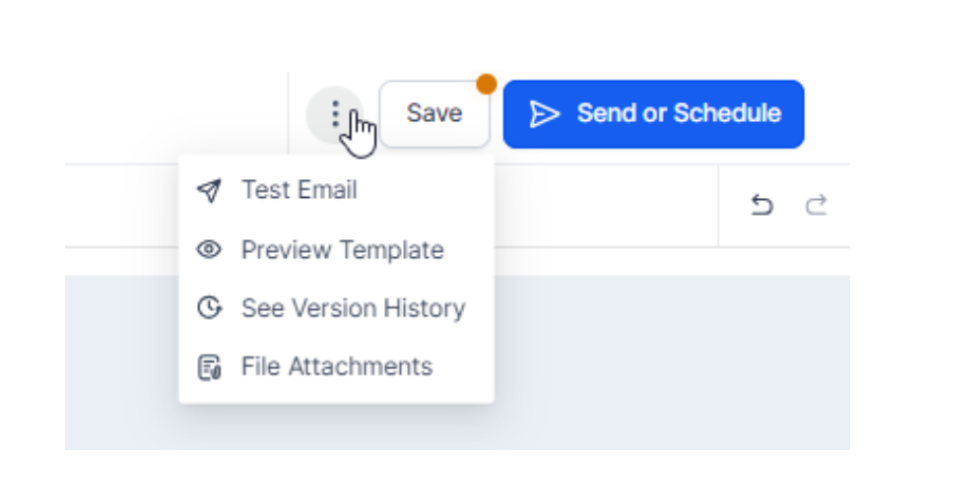 Section titled “Editing and Refinement:”If you click on the 3 dots icon, you will see the options: Test Email, See Version History, and Add Attachments.