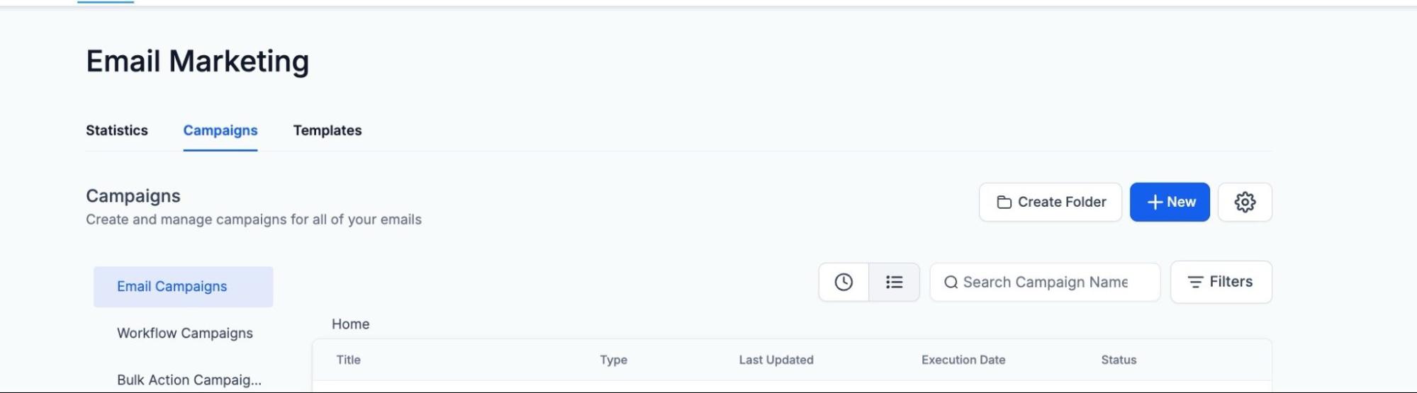Section titled “Navigating Email Builder: An Overview”The Email Builder, located within , is a versatile platform divided into two core sections: Email Campaigns and Templates. Here’s an introduction to these sections: