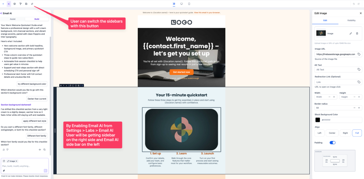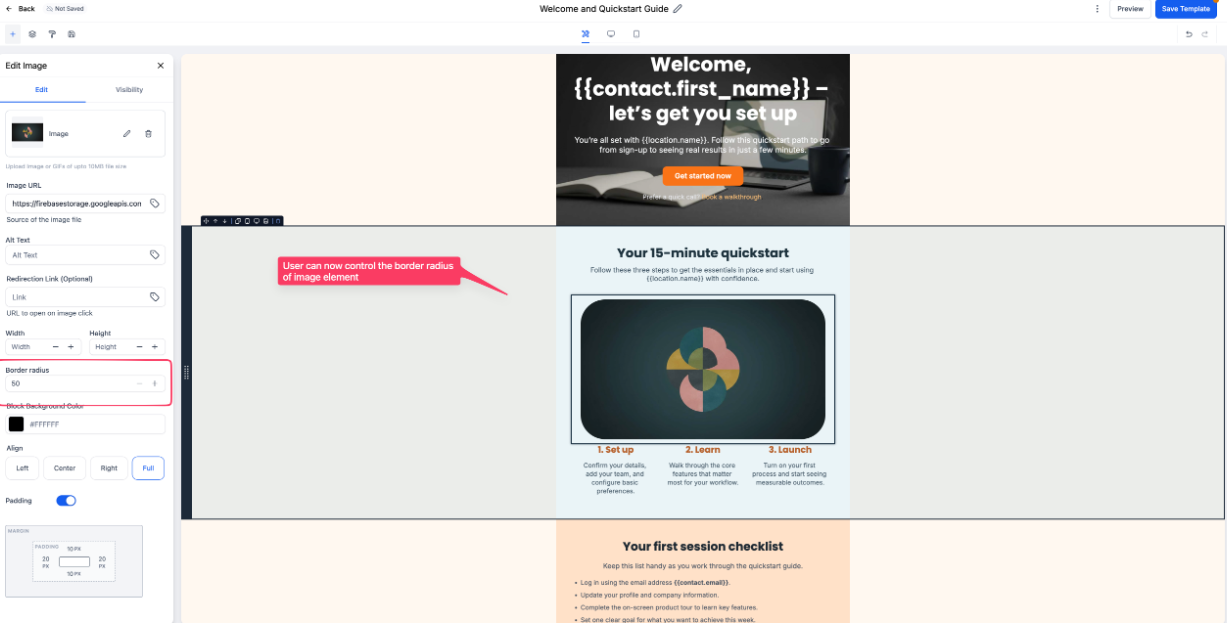 - When you click on the checkmark icon, you will be redirected to the email builder again, where you can make the last edits or additional edits as needed.