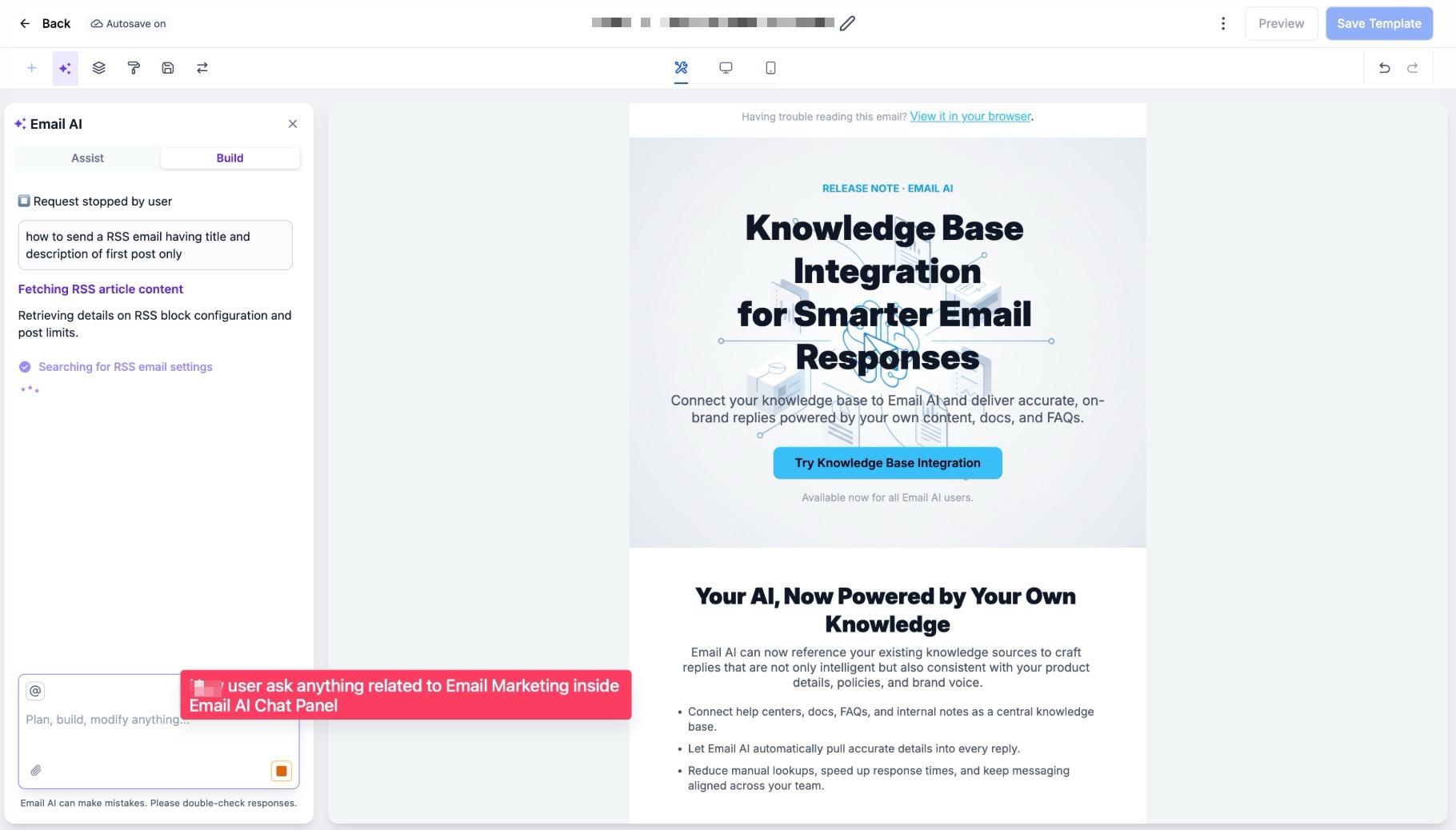 Automated Article Referencing: When generating email content, the AI automatically cites and references relevant help articles to provide users with verified information.