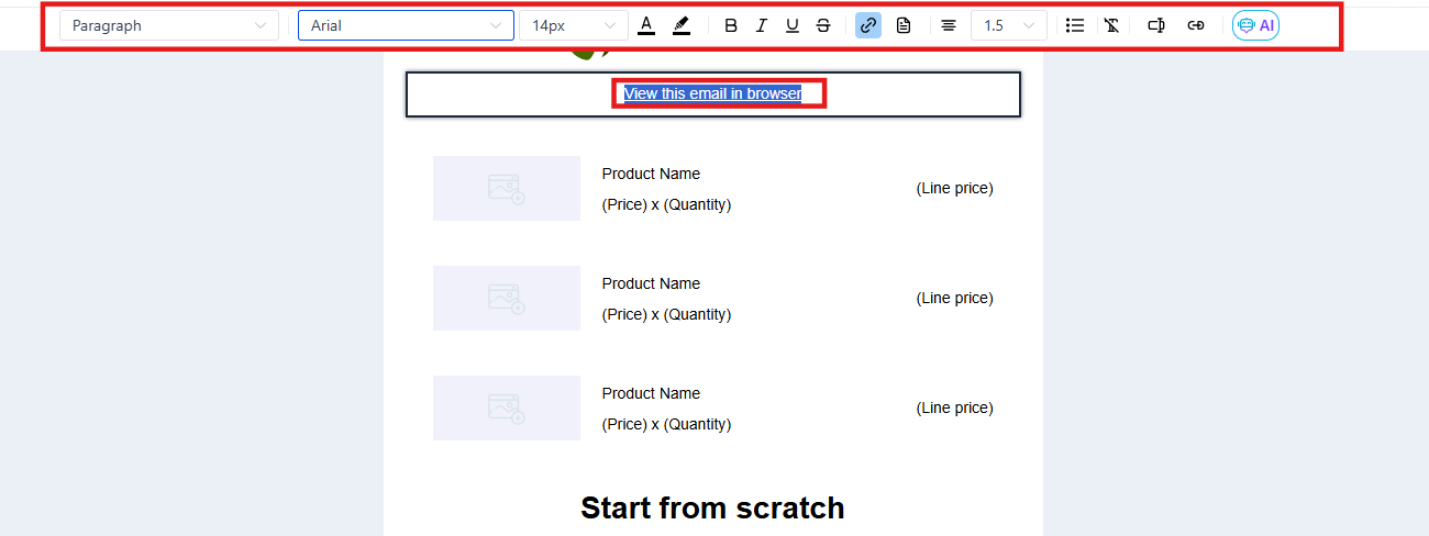 Question: Can I paste text from external documents into the email builder without messing up the formatting? Answer: Yes. The email builder features an “auto-cleansing” function for text. When you copy and paste from external sources, the system is designed to support a seamless transfer while automatically removing any pre-applied styling to ensure your template remains clean and consistent.