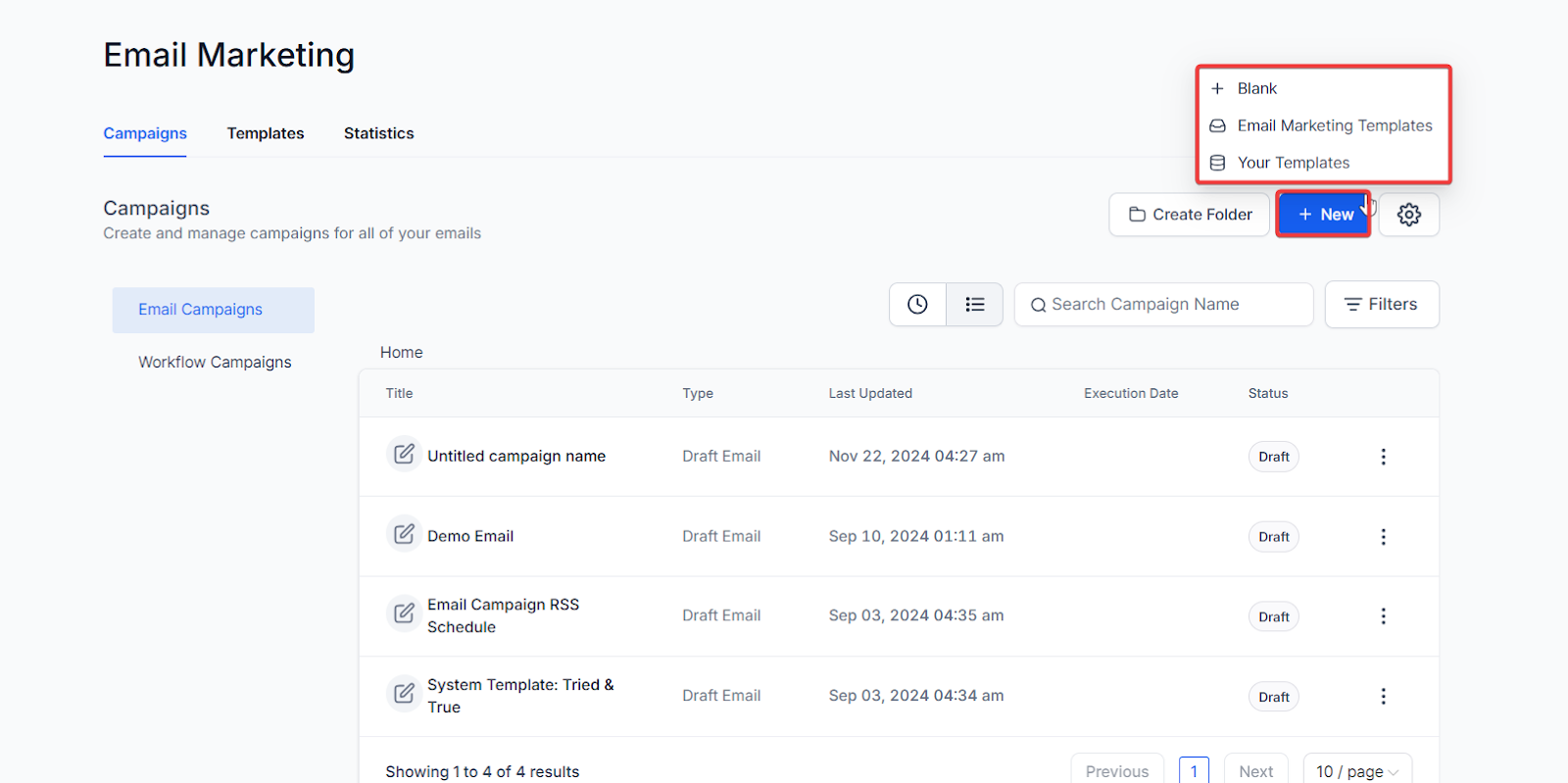 Section titled “Steps to Verify Email Addresses During Campaign Scheduling”Step 1: Start a New Campaign