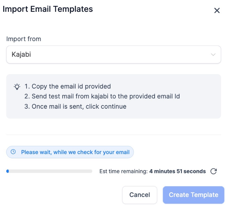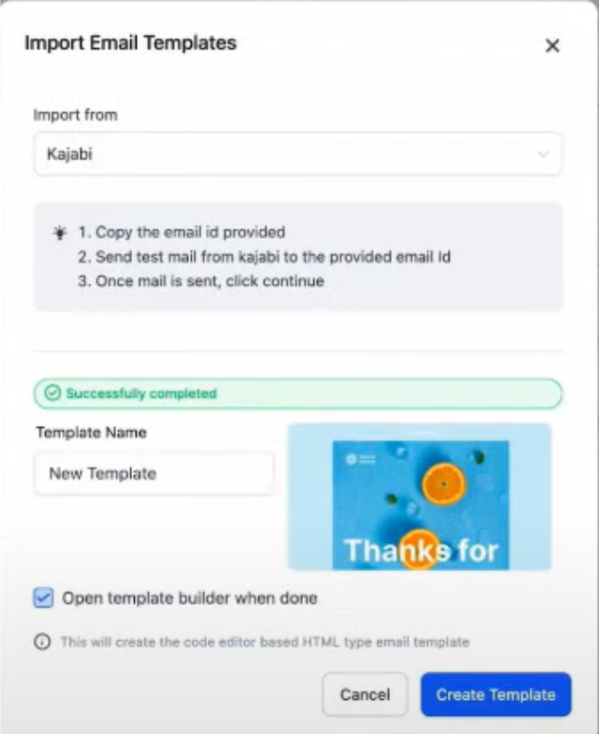 - For Kajabi or other platforms, wait for the system to automatically import the template after sending the email.