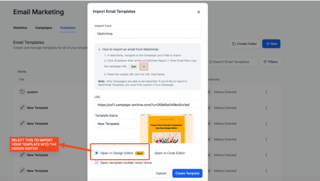 Import Mailchimp Templates into the Design Editor