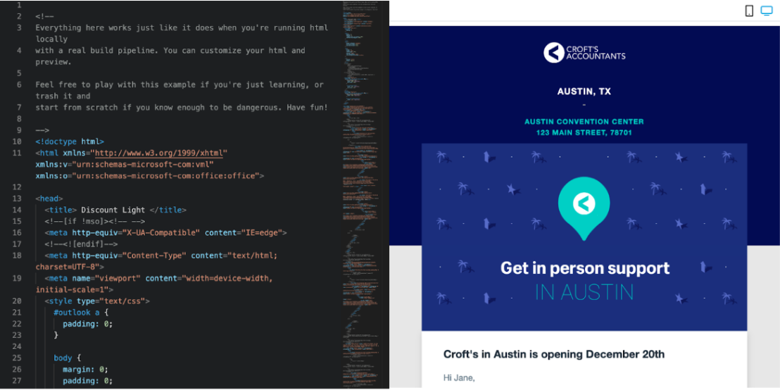 - Any changes made to the HTML code will instantly reflect in the preview.