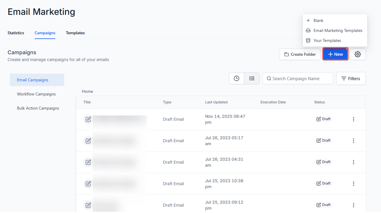 Section titled “Navigation”- Go to Marketing > Emails > select Campaigns