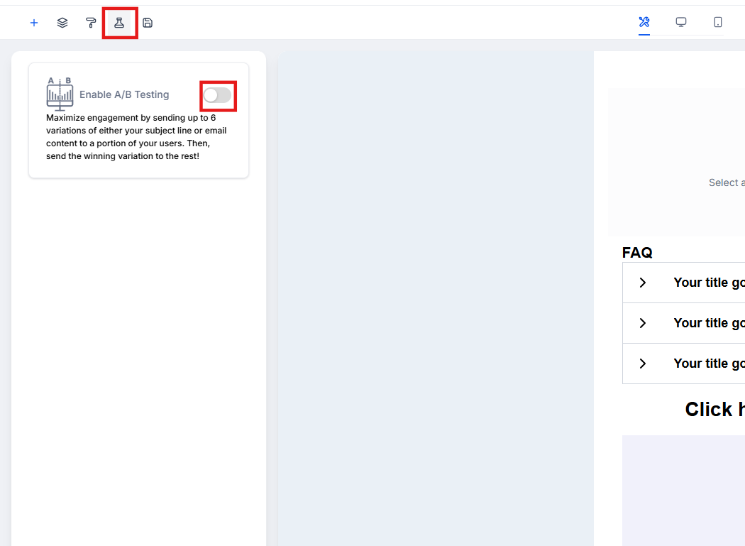 - Create a new email campaign click the A/B Testing tab, and enable the toggle