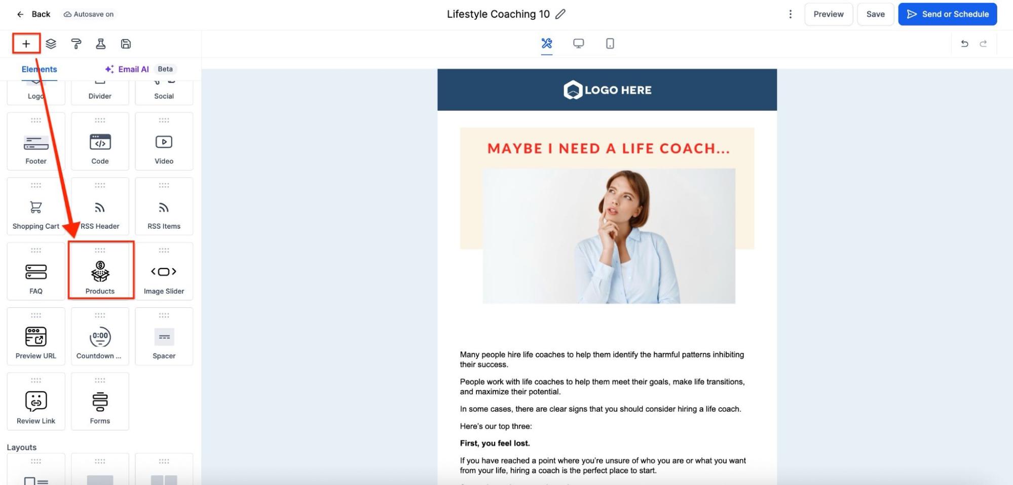 Question: Can I add multiple products using the Product Element in an email? Answer: Yes, you can add multiple products using the Product Element by selecting products from your catalog in Payments > Products. Customize each product’s layout, description, images, and links to suit your email campaign needs.