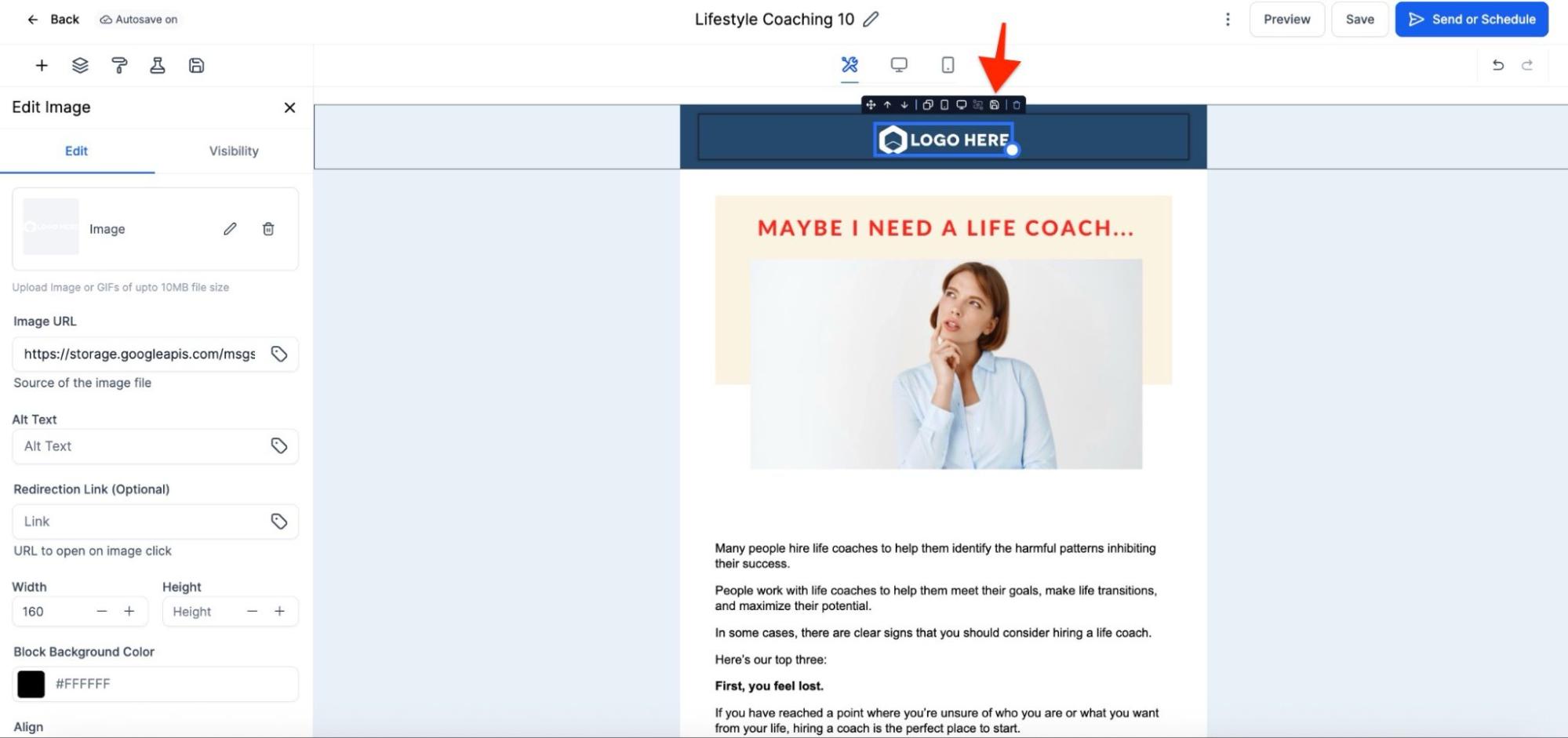 Section titled “3. Save Icon and Versioning: Organize Effortlessly”- Users can save both individual elements and entire layouts within the email builder.
