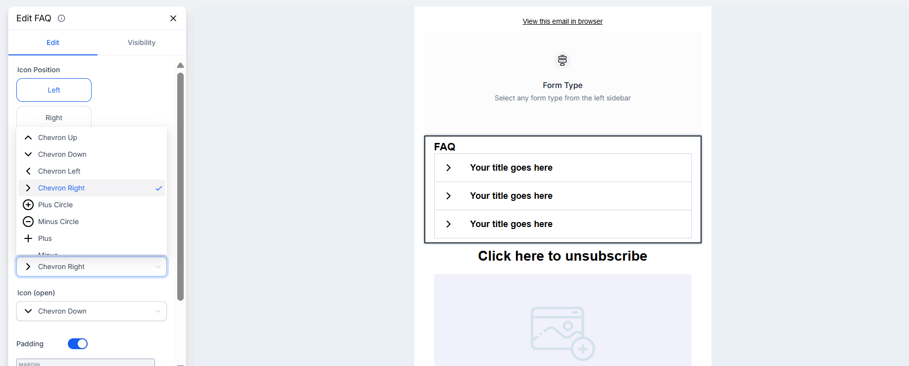 - Icon Customization: Tailor open and closed state icons, adjusting padding for a polished look.