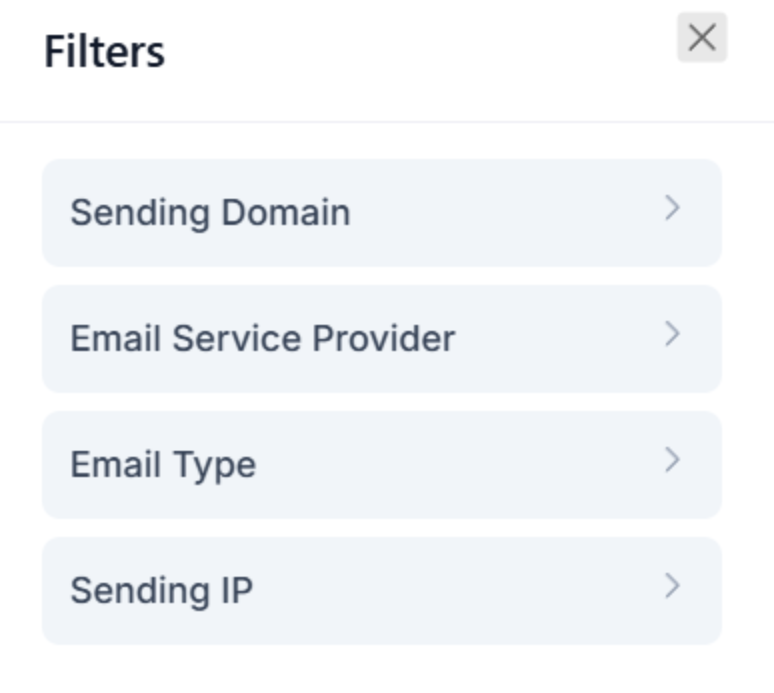 - Advanced Filters: Refine reports using filters like sending domain, email service provider, email type, or sending IP to drill down on specific issues.