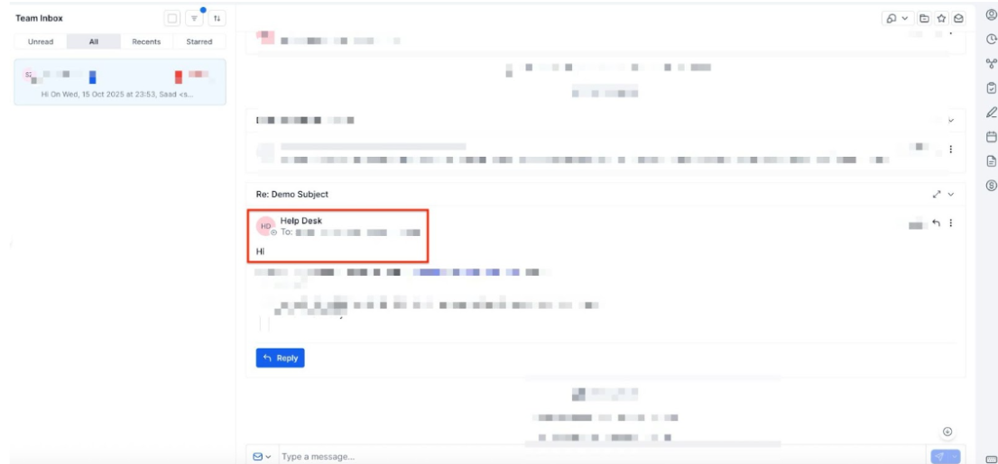 All subsequent messages in the email thread (initiated from the ) will be in sync. Outbound emails from your email will reflect in the and vice versa.