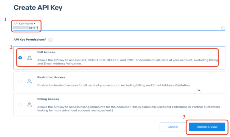 Answer: When creating your API key in SendGrid, you must select “Full Access”. If you chose “Restricted Access” and didn’t specifically enable “Mail Send” and “Template” permissions, the integration will be unable to transmit your emails.