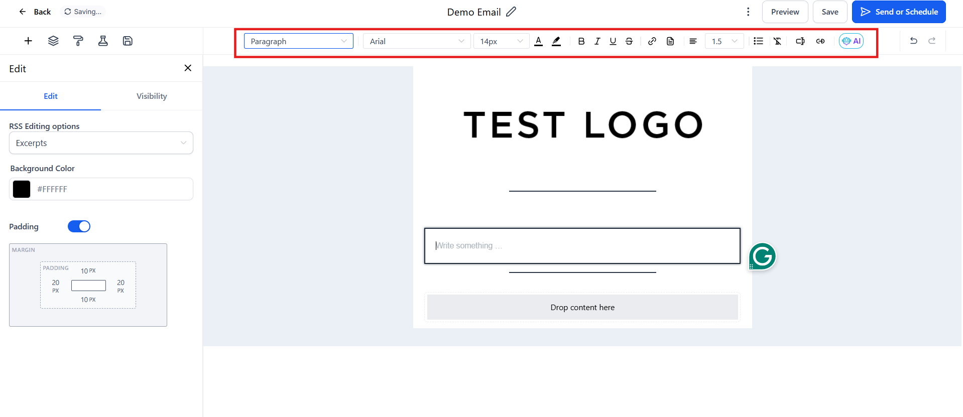Moreover, the inline editor allows for custom values, giving you better control over your content. The tool also supports AI-assisted content generation, which can help you create engaging email content faster.