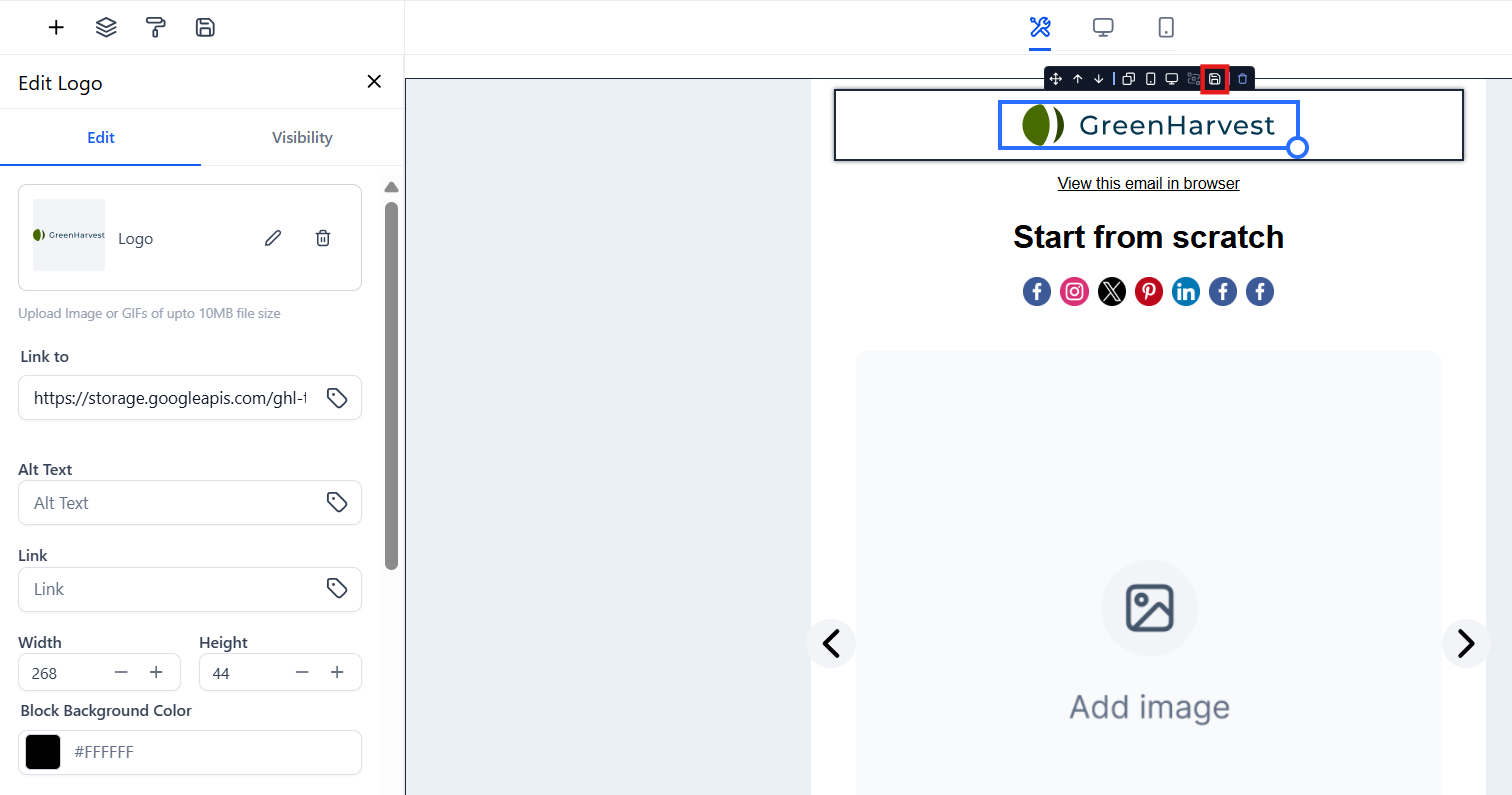 - Saving elements: Users can save both individual elements and entire layouts within the email builder.