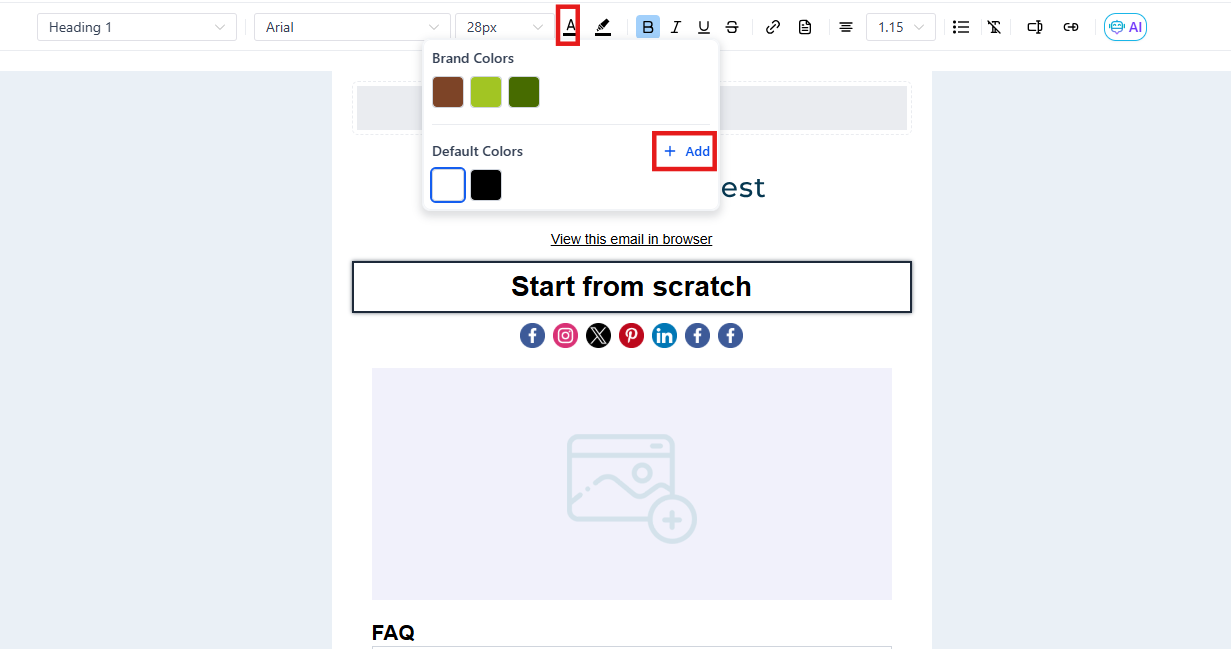 Question: Can I use my own brand colors in the email builder?