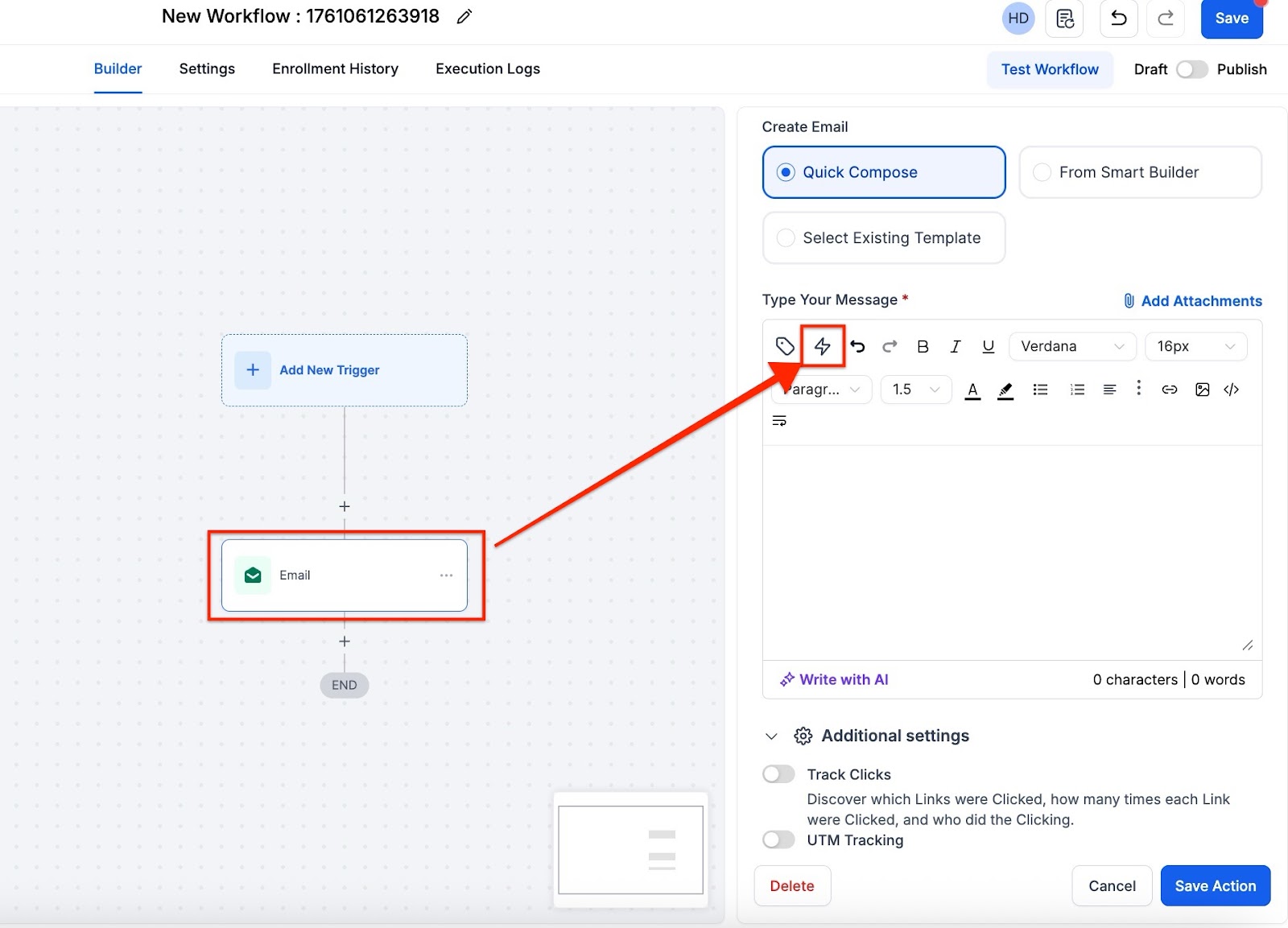 Alternatively, you can also select trigger links by clicking on the flash icon (shown in the screenshot below)