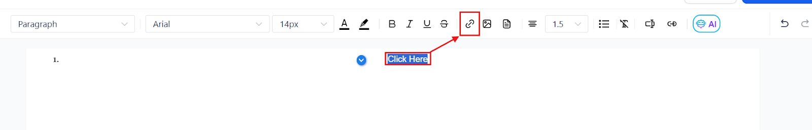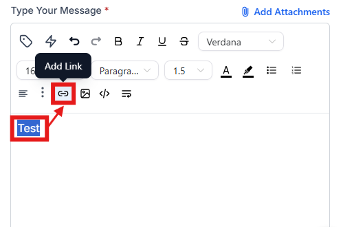 - Ideally, type a word, highlight it, and select the add link icon to hyperlink it.