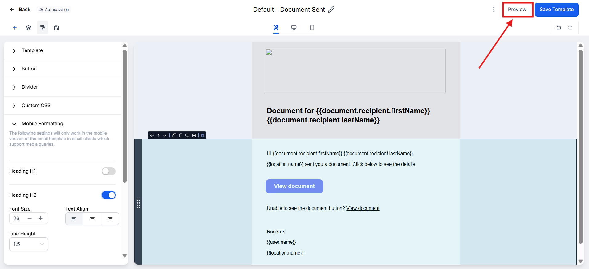 Section titled “Step 2: Preview and Test Your Email Campaign”- Click the “Preview” button to preview your mobile view.