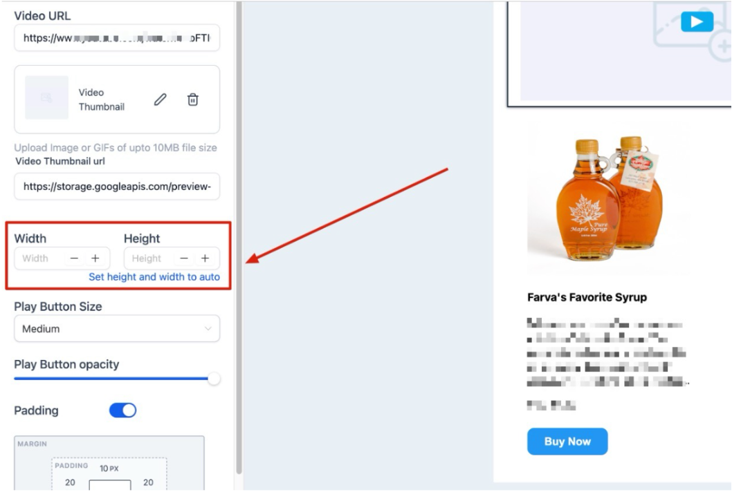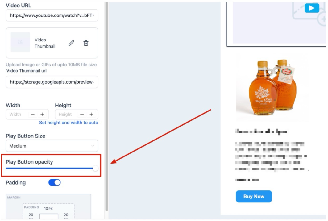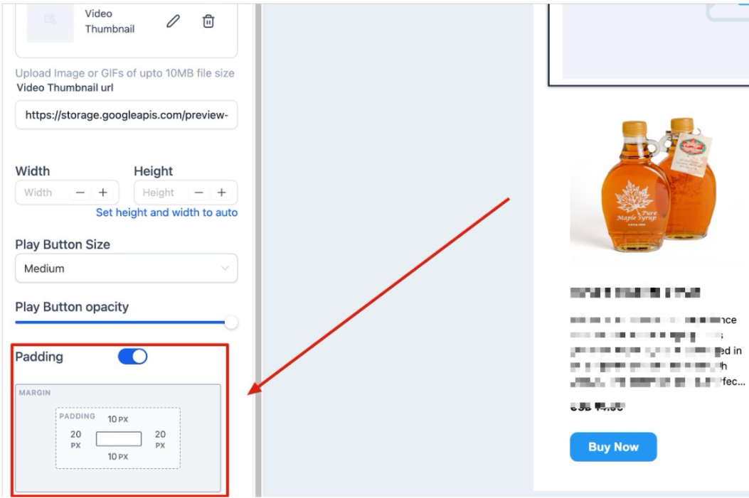 Padding: You can add padding to the video element using this field. Check the image below to see how it looks in action