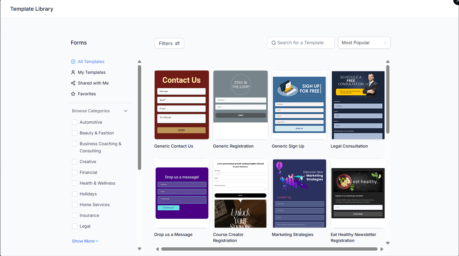 Answer: You can quickly find what you need by filtering the library for specific categories or tags. Simply browse the available options to find the template that best fits your business category.