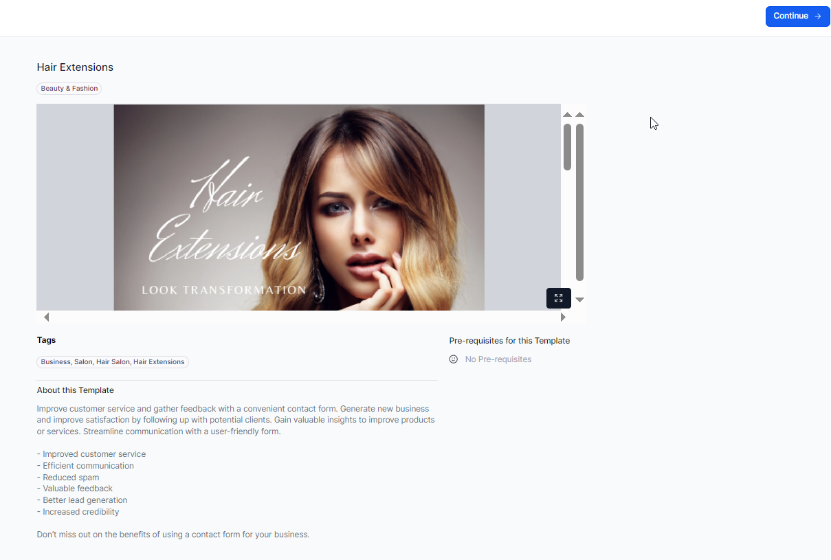 Section titled “Viewing and Editing the Template:”- Click on the “Continue” button to view and edit the selected template.
