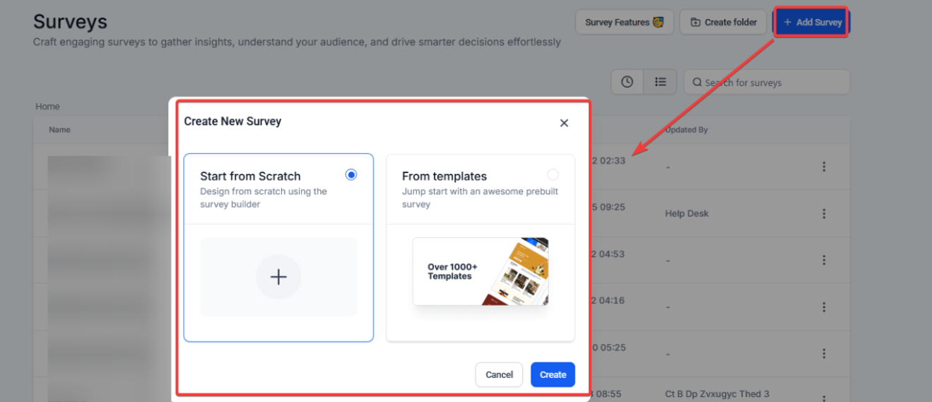 - Click on the ”+ Add Survey” button and select “From Templates”.
