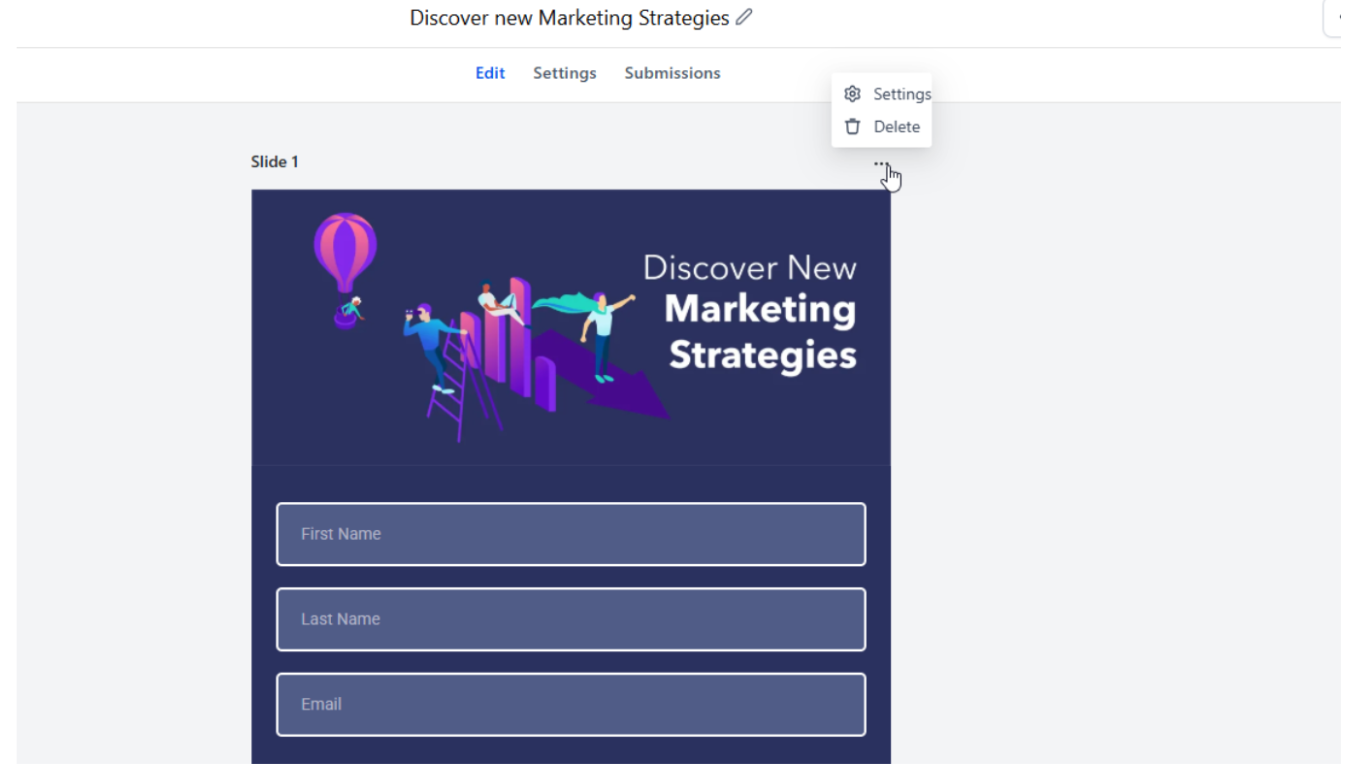 - You can also edit the slide position by clicking on the 3 dots at the right of the template and on Settings.