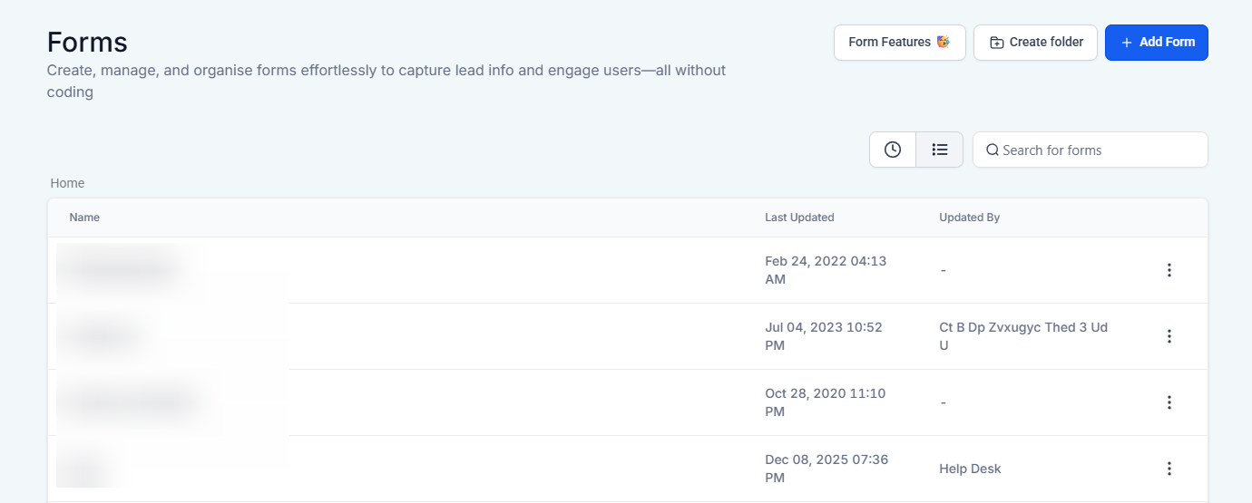 Section titled “Step 1: Create a Custom Field Inside the Form Builder”- Head to Sites > Forms > Builder > + Add Form.