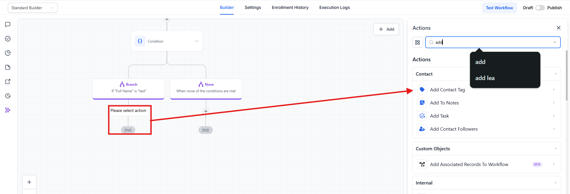 Step 5: Add your Workflow Action