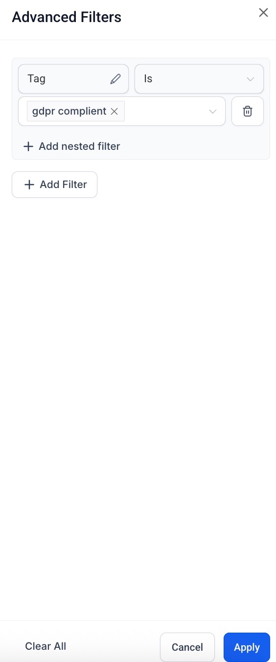 - Locate the “ Tag” filter. In the “tag is” menu, click on compliant.