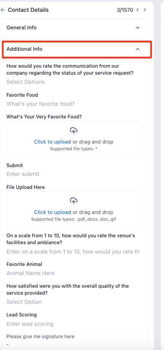 2. Access Additional Information: Click on “Additional Information” and other folders on the left side of the contact page to view the stored answer