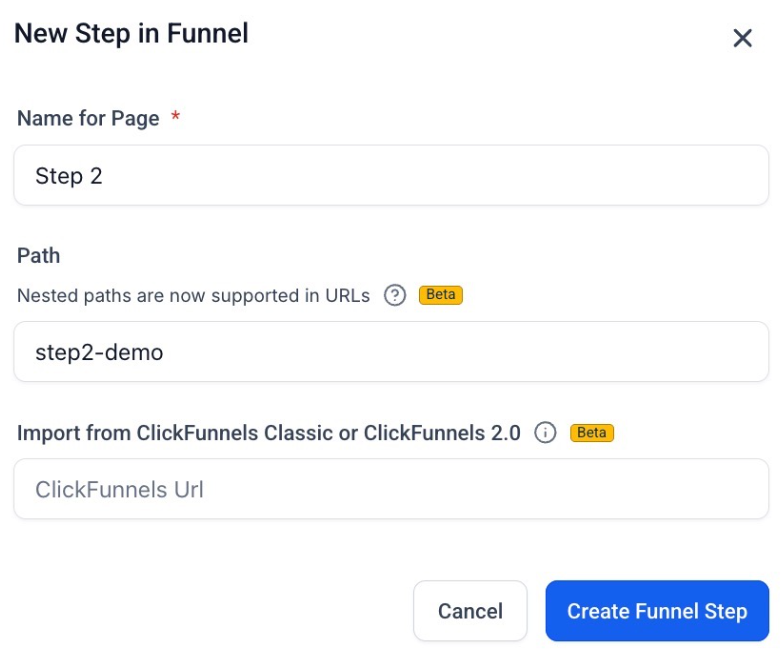 Question: Can I rename an imported funnel step or page after import? Answer: Yes. You can rename the imported step or page anytime by opening its Settings and updating the Path and Page Name.
