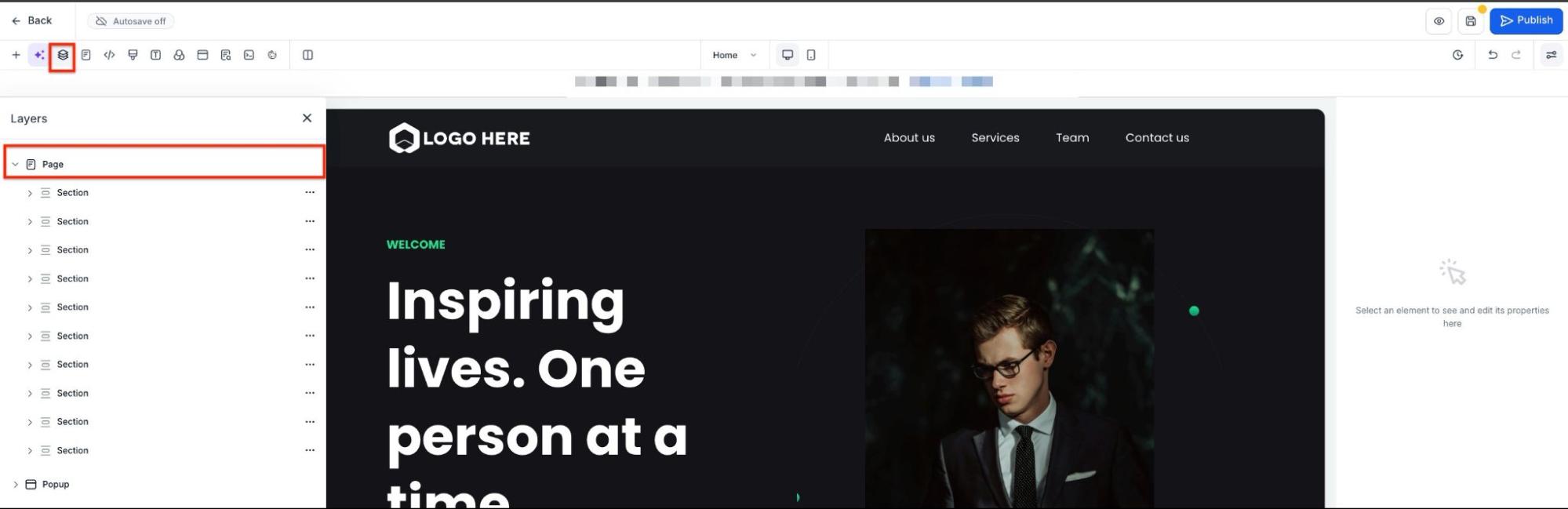 Section titled “Layers”You can search for any specific layer or section in a funnel. This allows you to navigate to any section and access the elements contained within it.
